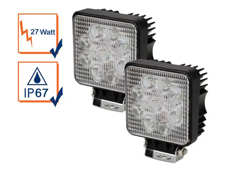 Kompakter LED Arbeitsstrahler 2er Set mit verstellbarem Montagebügel aus Edelstahl.